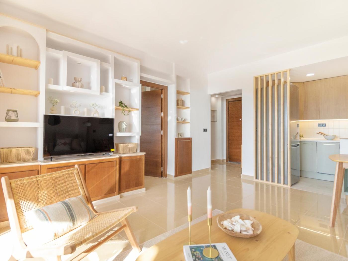 Apartamento. This apartment features a private pool. Boasting a private entrance, this air-conditioned apartment features 1 living room, 1 separate bedroom and 1 bathroom with a shower and a hairdryer. In the fully equipped kitchen, guests will find a refrigerator, a dishwasher, kitchenware and an oven. Featuring a terrace with sea views, this apartment also features a washing machine and a flat-screen TV with streaming services. The unit has 2 beds.