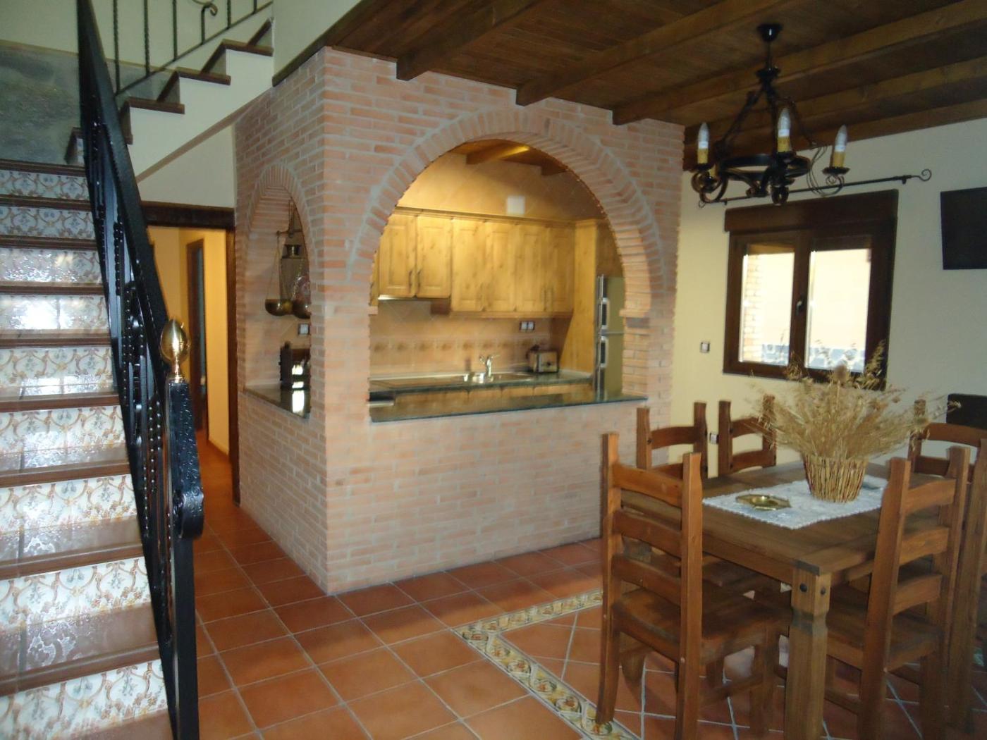 La casa rural dispone de 3 dormitorios, 3 baños, ropa de cama, toallas, TV de pantalla plana, zona de comedor, cocina totalmente equipada y terraza con vistas a la ciudad.