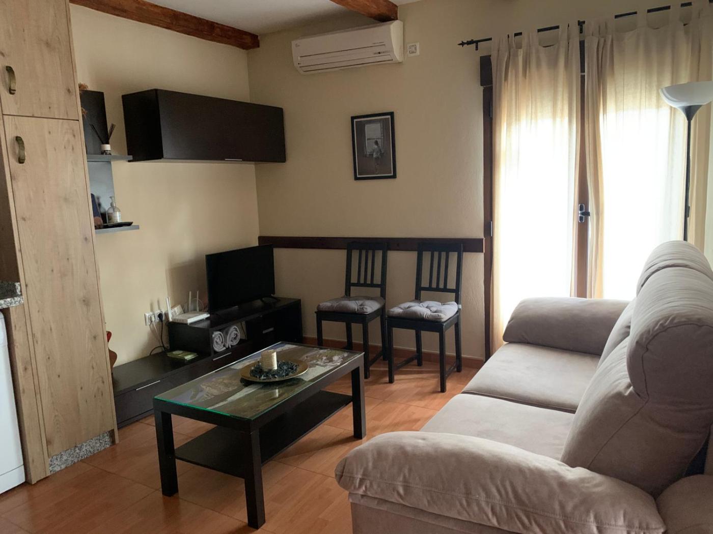 Apartamento de 2 dormitorios. El apartamento dispone de balcón con vistas a la ciudad y a la montaña, 2 dormitorios y 1 baño. La zona de estar incluye sofá y TV y está comunicada con la zona de cocina, equipada con lavadora, microondas y cafetera.