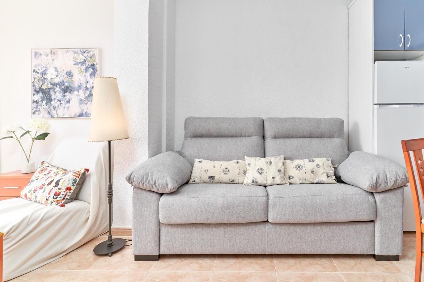 Apartamento Estudio con vistas al mar. Featuring a private entrance, this air-conditioned apartment comprises 1 living room, 1 separate bedroom and 1 bathroom with a shower and a hairdryer. Guests can make meals in the kitchen that comes with kitchenware, an oven, a microwave and a toaster. This apartment features a washing machine, a coffee machine, a TV and sea views. The unit offers 3 beds.