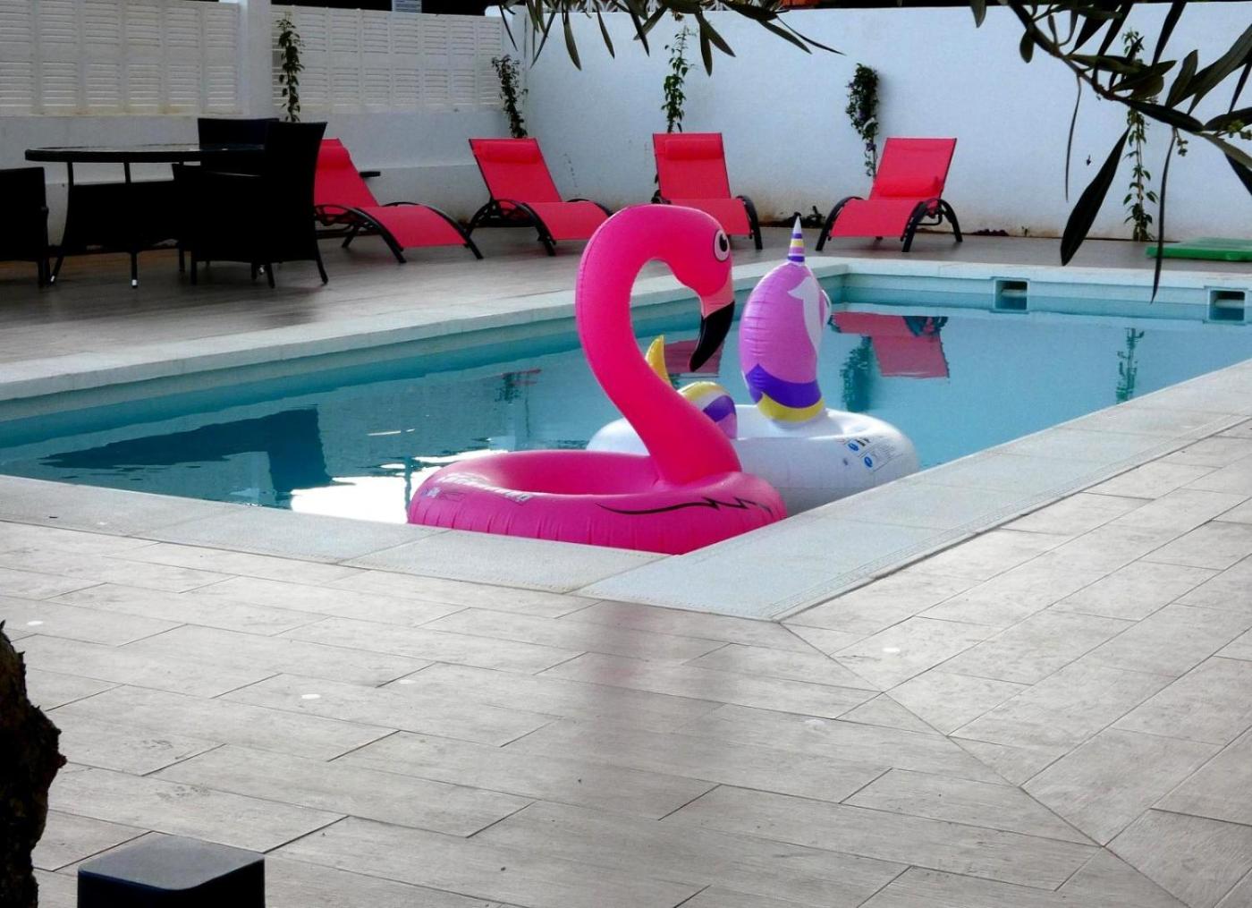 Villa Deluxe. This villas special feature is the private pool. Featuring a private entrance, this air-conditioned villa comprises 2 living rooms, 5 separate bedrooms and 5 bathrooms with a bath and a shower. Guests will find a stovetop, a refrigerator, a dishwasher and kitchenware in the fully equipped kitchen. The villa also provides guests with a barbecue. The spacious villa provides a flat-screen TV with streaming services, a washing machine, soundproof walls, a tea and coffee maker as well as sea views. The unit offers 7 beds.