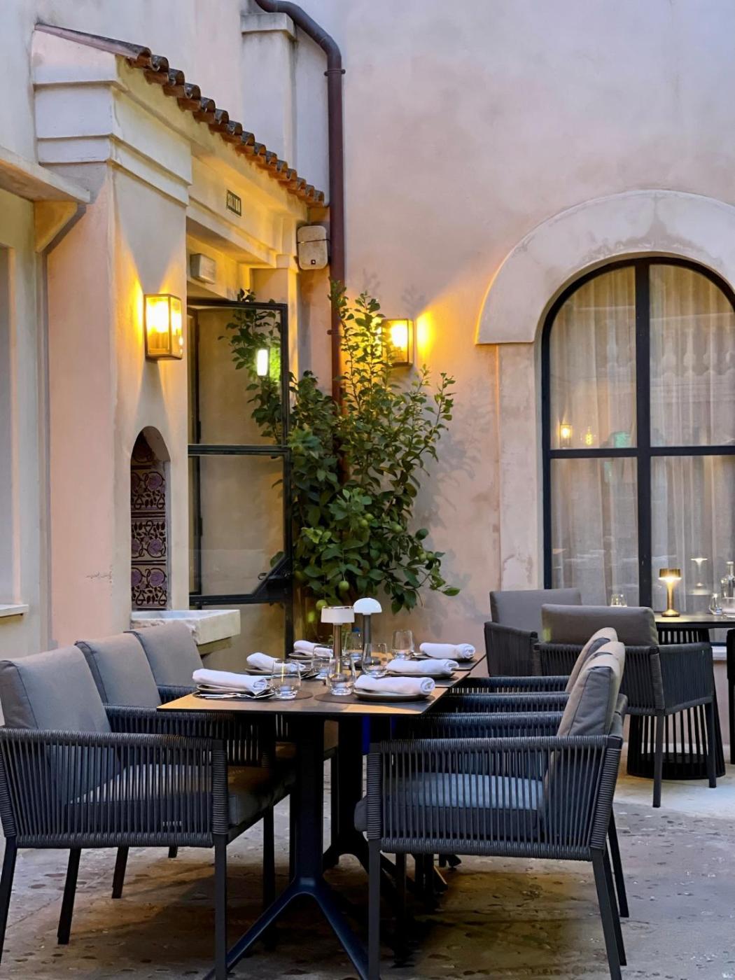 El restaurante sirve especialidades típicas del Mediterráneo, así como cocina de fusión tailandesa y japonesa. Los platos están elaborados con productos de temporada.