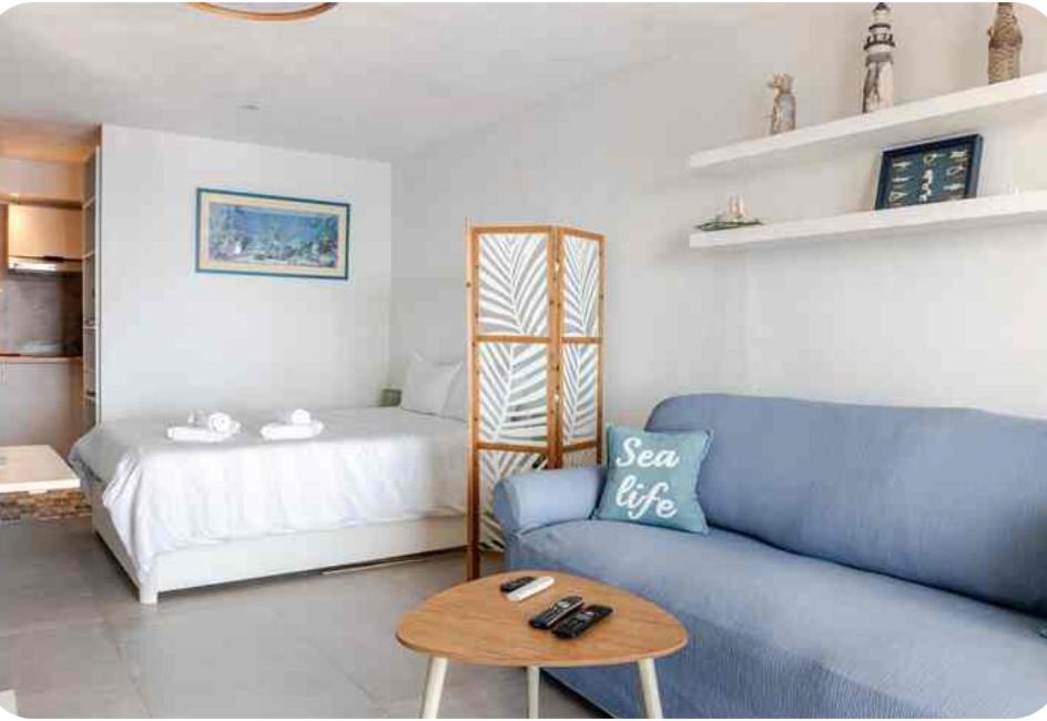 El apartamento cuenta con terraza y vistas al mar, y tiene 1 dormitorio, una sala de estar, TV de pantalla plana, una cocina equipada con nevera y lavavajillas, y 1 baño con ducha. Hay toallas y ropa de cama en el apartamento.