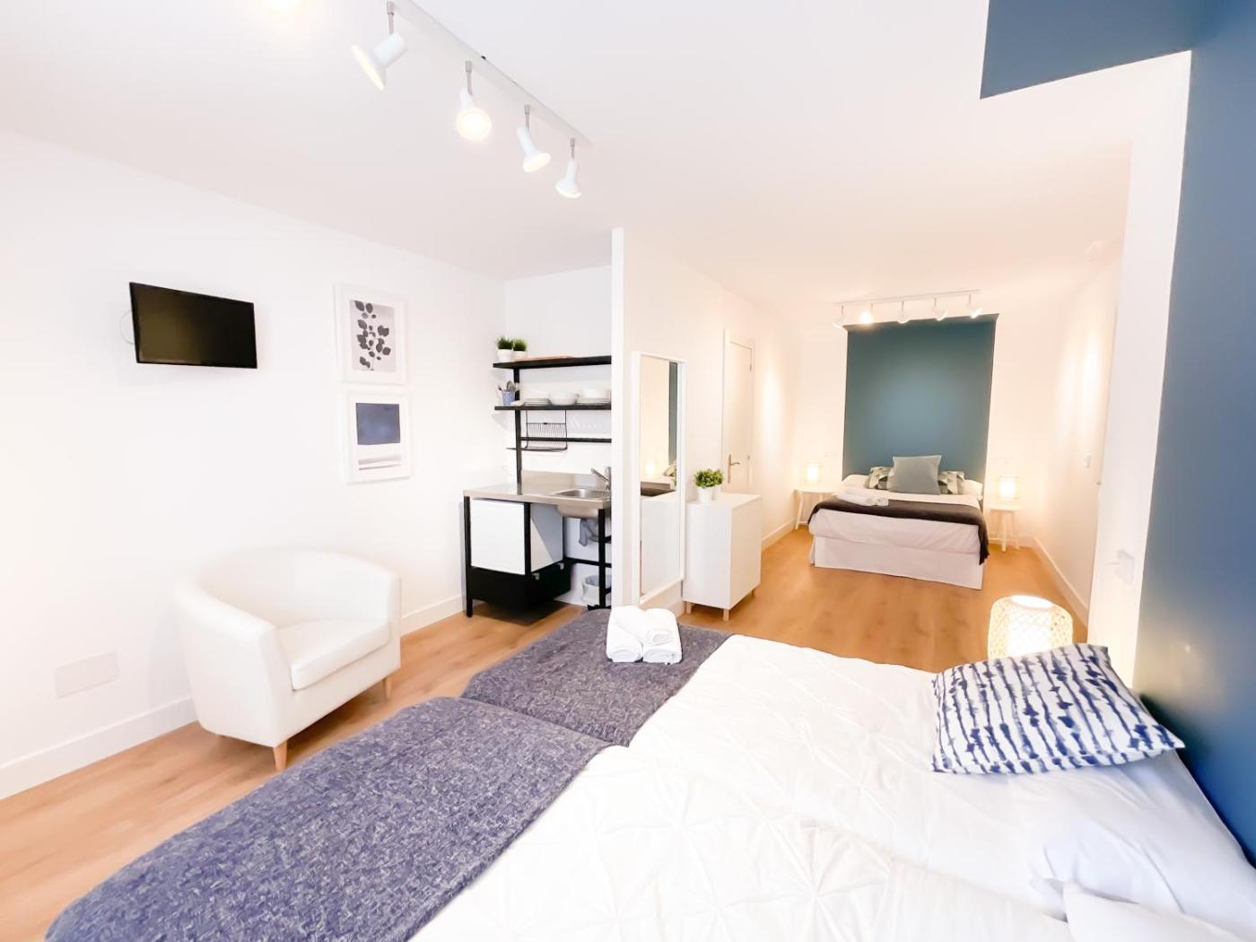 Habitación cuádruple. Offering free toiletries, this quadruple room includes a private bathroom with a shower. Meals can be prepared in the kitchenette, which has a refrigerator, kitchenware and a microwave. This quadruple room has a wardrobe, heating, a flat-screen TV and city views. The unit has 4 beds. ;