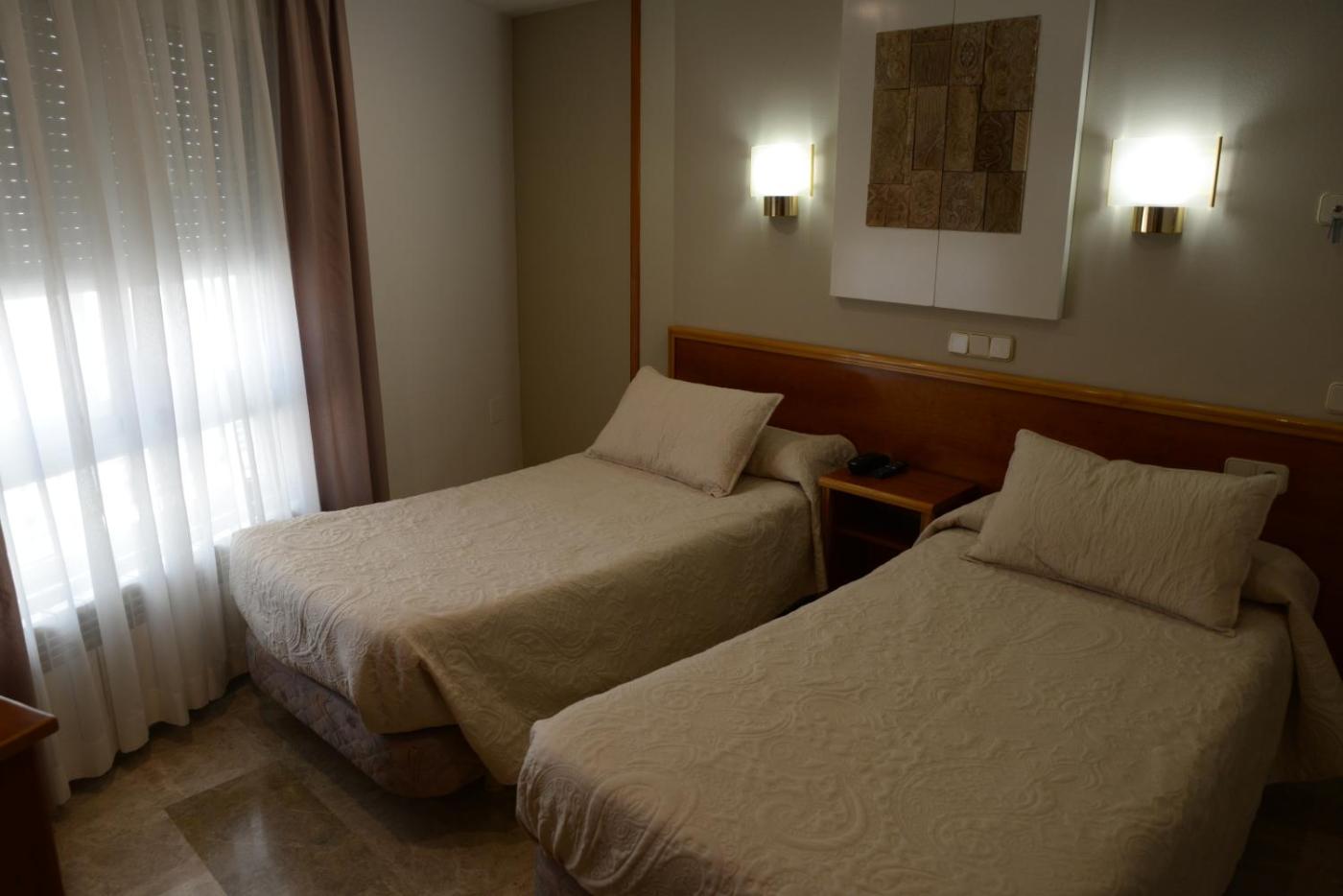 Habitación Doble - 2 camas. Habitación sencilla con suelo de baldosa, aire acondicionado, baño privado y escritorio. Dispone de calefacción central. Algunas habitaciones tienen terraza privada. ;