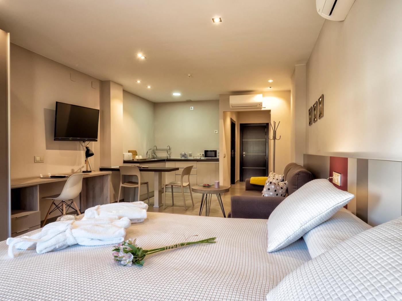Apartamento Estudio. Featuring a private entrance, this air-conditioned apartment comprises 1 living room, 1 separate bedroom and 1 bathroom with a walk-in shower and a bidet. The apartment provides a flat-screen TV, a washing machine, soundproof walls, a wardrobe as well as city views. The unit offers 1 bed.