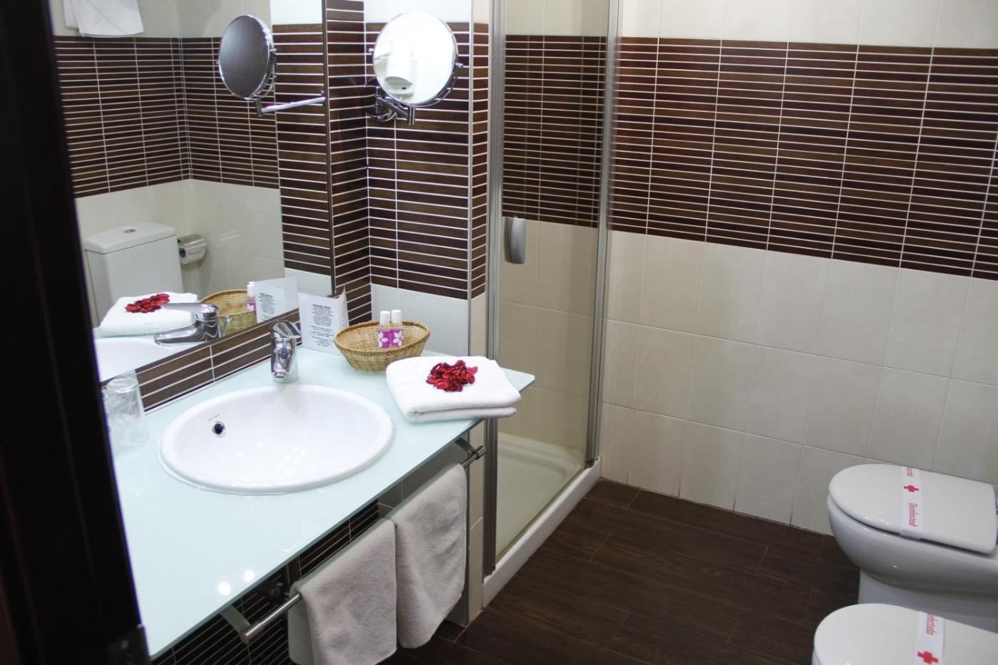 Habitación Doble adaptada para personas con discapacidad - 2 camas. Esta habitación doble dispone de 2 camas individuales y baño privado con artÃculos de aseo gratuitos, ducha a ras de suelo, bidé y secador de pelo. Esta habitación con 2 camas individuales tiene aire acondicionado, TV de pantalla plana, armario, caja fuerte y suelo de parquet. El alojamiento incluye 2 camas.