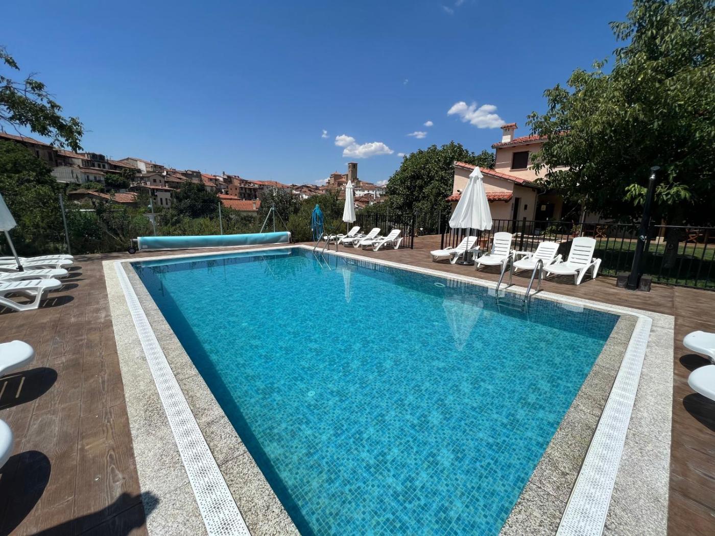 APARTAMENTOS DOÑA JIMENA DEL AMBROZ 4 Estrellas complejo único en el centro del pueblo ofrece bañera de hidromasaje, además de alojamiento con aire acondicionado, en Hervás, a 44 km de Plaza Mayor. Se ofrece wifi gratis en todo el alojamiento y parking privado en el propio alojamiento.