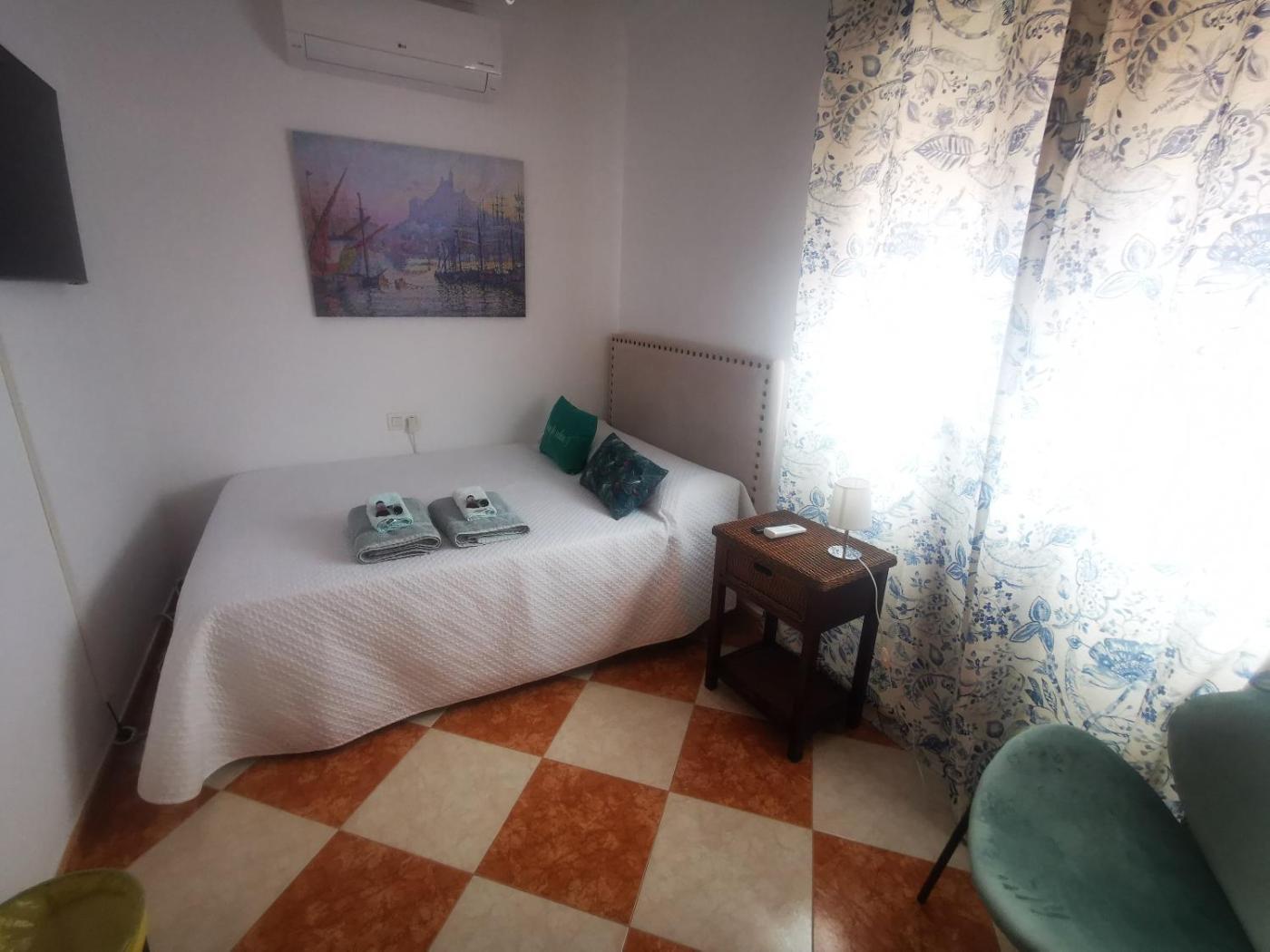 Habitación Doble con baño compartido - 2 camas. The twin room provides air conditioning, a wardrobe, as well as a shared bathroom featuring a shower and a hairdryer. This twin room offers heating, a flat-screen TV and a quiet street view. The unit offers 2 beds. ;