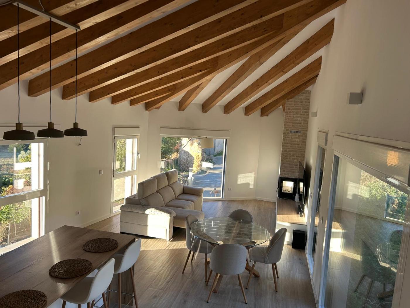 Esta casa rural con aire acondicionado consta de 4 dormitorios, una sala de estar, una cocina totalmente equipada con nevera y cafetera, y 2 baños con ducha y artículos de aseo gratuitos. Hay toallas y ropa de cama en la casa rural.