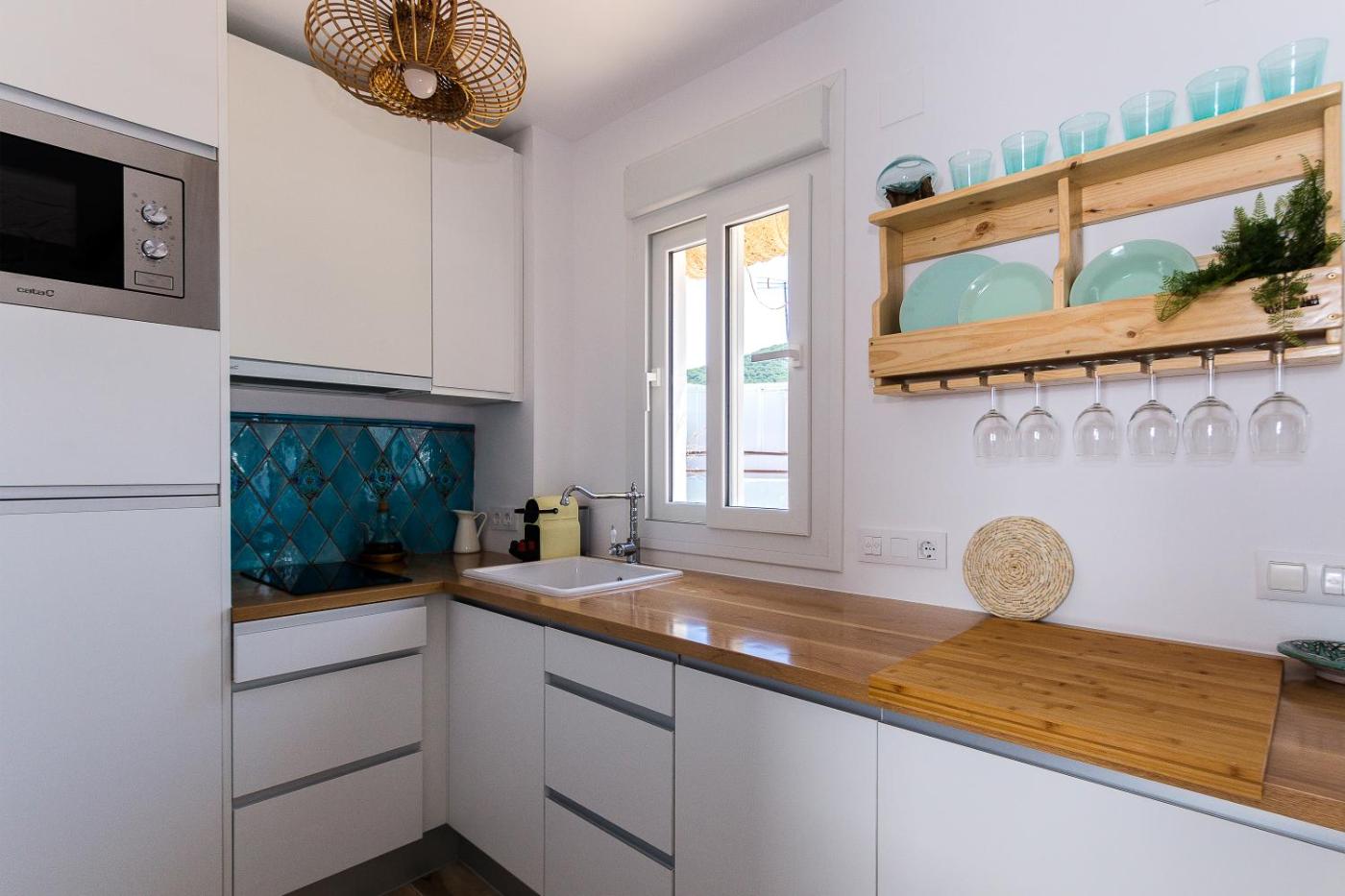 El apartamento tiene 1 dormitorio, 1 baño, ropa de cama, toallas, TV de pantalla plana, zona de comedor, cocina totalmente equipada y terraza con vistas al mar.