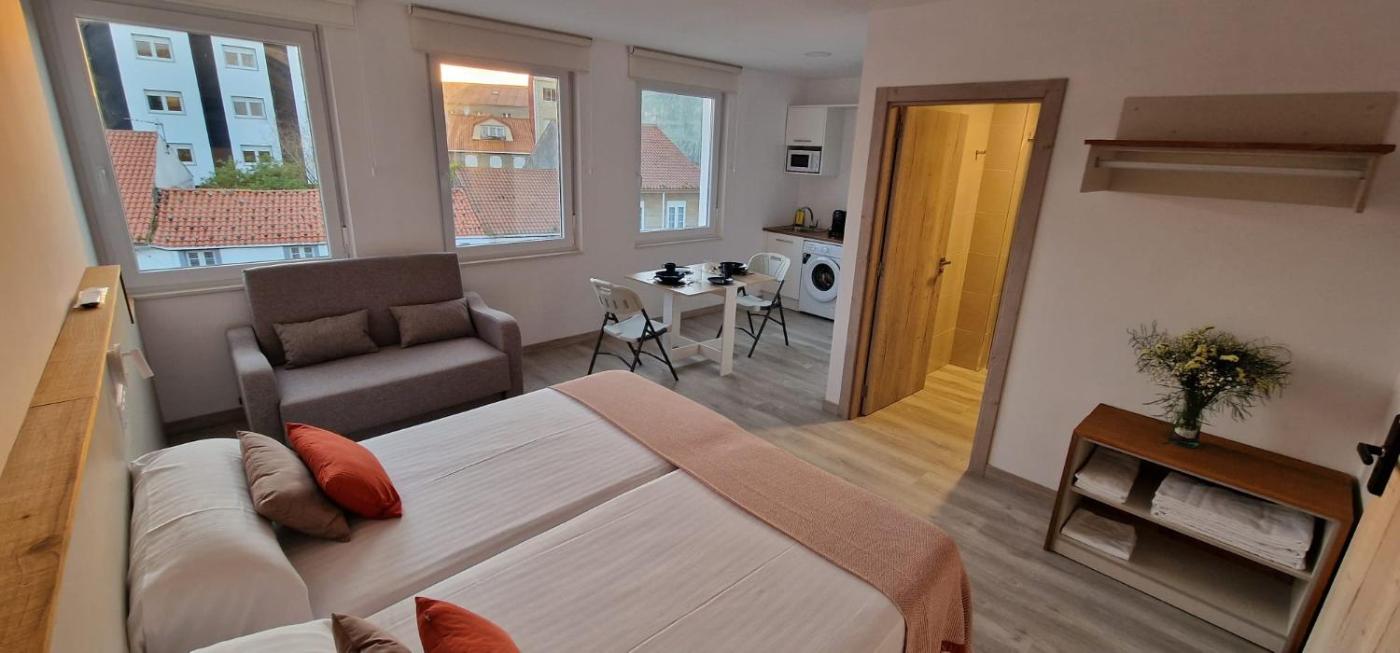 Estudios en Plaza Cabo da Vila centro Muxia se encuentra en MuxÃa, a 3 min a pie de Playa O Coido y a 30 km de Cascada de Ézaro, y ofrece alojamiento con wifi gratis y TV de pantalla plana.