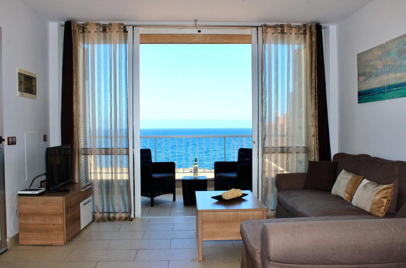 El apartamento cuenta con terraza y vistas al mar, y tiene 2 dormitorios, una sala de estar, TV de pantalla plana, una cocina equipada con nevera y horno, y 1 baño con bidet. Hay toallas y ropa de cama en el apartamento.