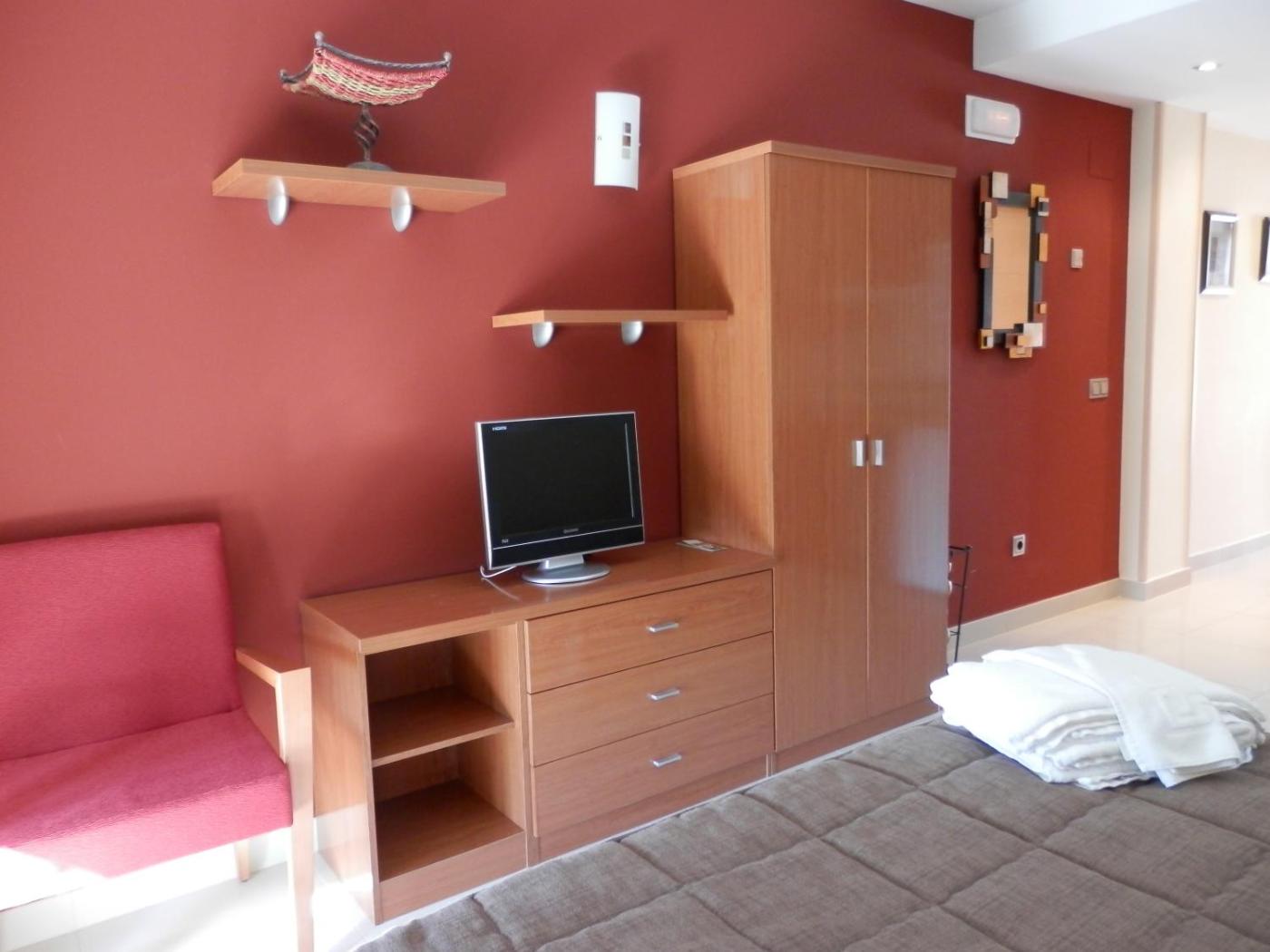 Estudio Deluxe con cama grande. The spacious studio features a tea and coffee maker, a wardrobe, as well as a private bathroom boasting a shower and a hairdryer. The studios kitchenette is available for cooking and storing food. This studio provides a TV. The unit has 2 beds.