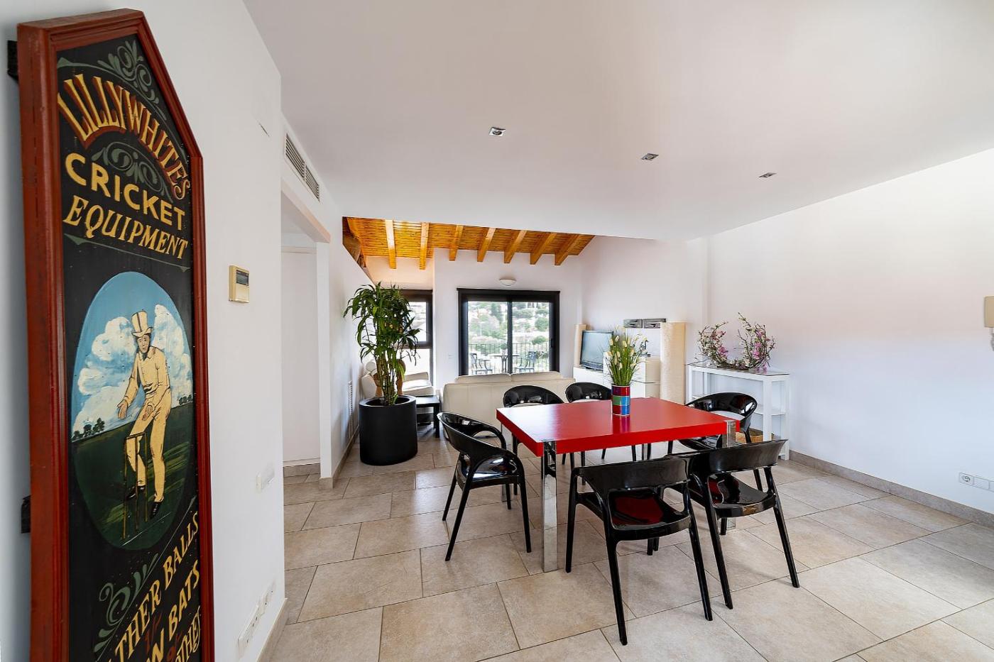 Apartamento D. This spacious apartment consists of 1 living room, 3 separate bedrooms and 1 bathroom with a walk-in shower and a hairdryer. Guests can make meals in the kitchen that is equipped with a stovetop, a refrigerator, a dishwasher and kitchenware. This wheelchair accessible apartment features air conditioning, a seating area with a flat-screen TV and a roll-in shower. The unit offers 5 beds. ;