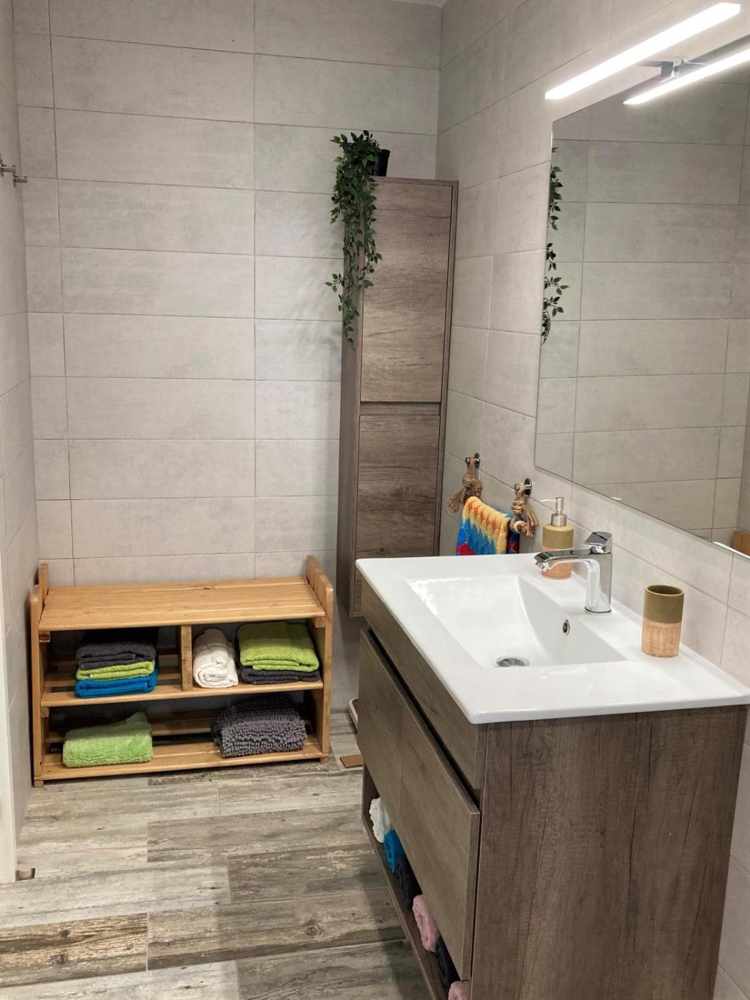 Este apartamento con aire acondicionado consta de 3 dormitorios, una sala de estar, una cocina totalmente equipada con nevera y cafetera, y 2 baños con ducha y secador de pelo. Hay toallas y ropa de cama en el apartamento.