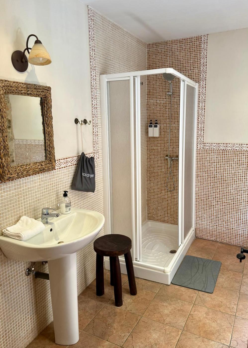 Las habitaciones incluyen calefacción, 1 cama doble o 2 individuales y baño privado con ducha. Todas presentan una decoración clásica con suelo de madera y disponen de balcón privado con vistas al campo de los alrededores.