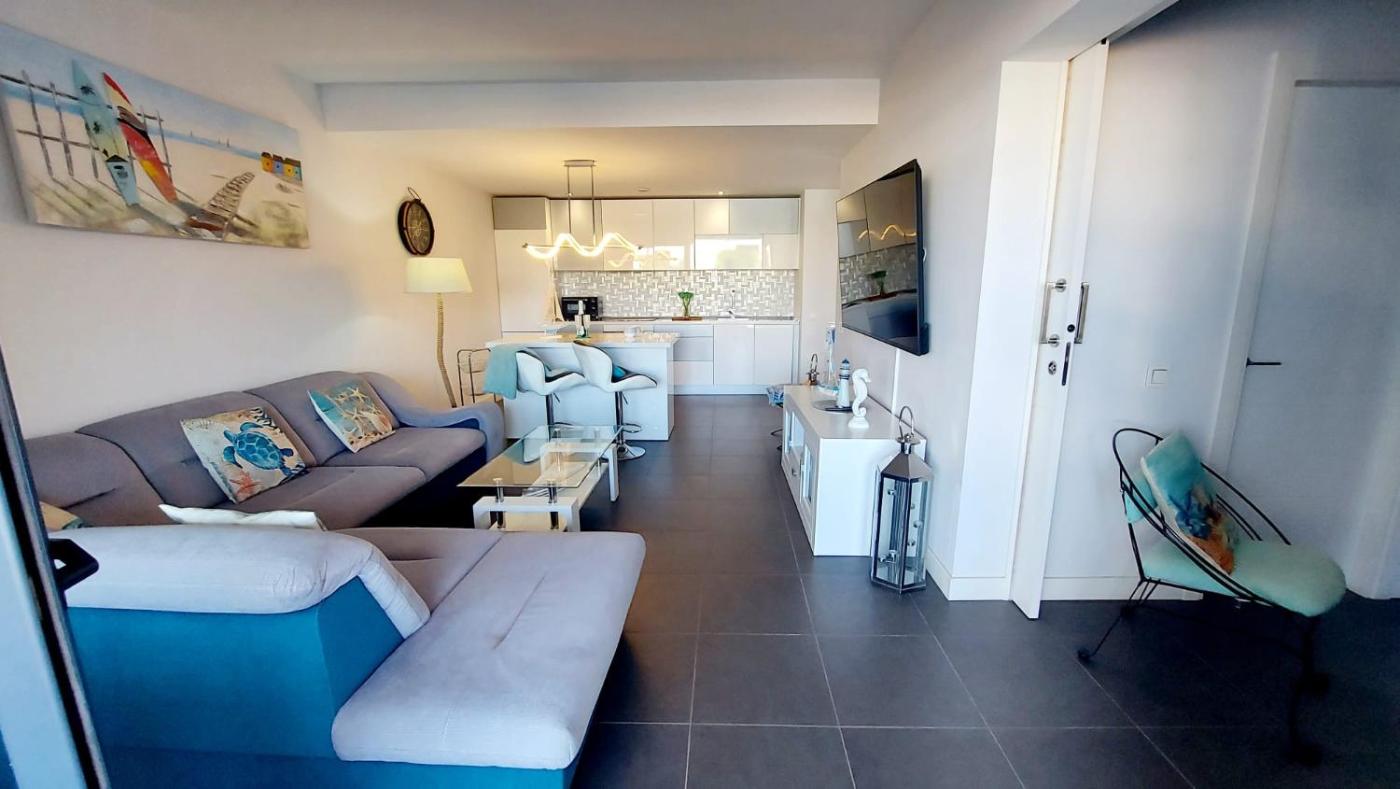 Apartamento con vistas a la piscina. The pool with a view is a top feature of this apartment. This spacious apartment comes with 1 living room, 1 separate bedroom and 1 bathroom with a walk-in shower and a hairdryer. Guests can make meals in the kitchen that features a refrigerator, a dishwasher, an oven and a microwave. Boasting a terrace with garden views, this apartment also features a washing machine and a flat-screen TV. The unit has 2 beds.